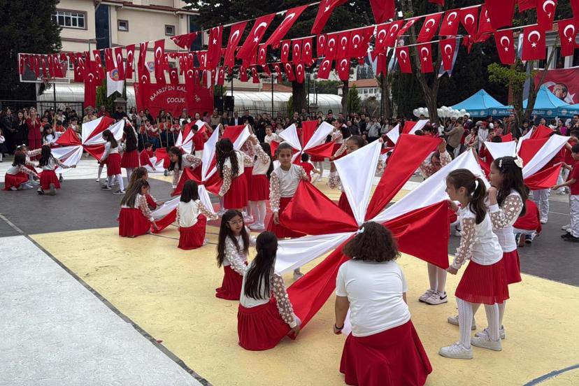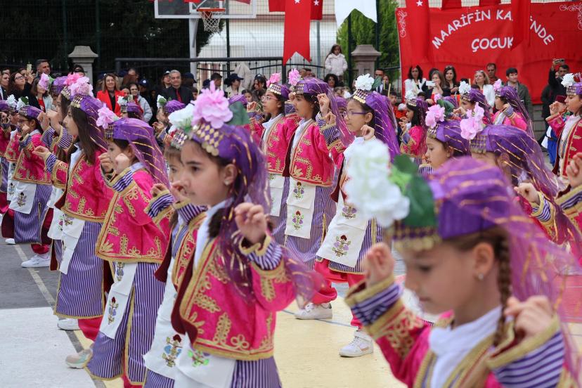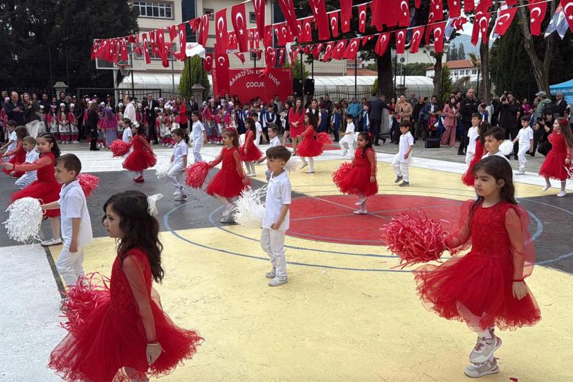 Yoğun katılımın olduğu tören, şiirlerin okunması öğrencilerin dans ve halk oyunları gösterilerinin ardından sona erdi.