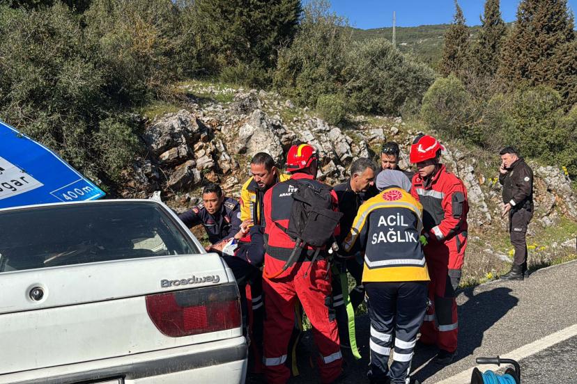 MUĞLA'da direksiyon hakimiyetini kaybettiği otomobiliyle yol kenarındaki karayolu tabelasına çarpan Serkan Özmen (46) ile yanındaki eşi Seda Özmen (39) yaralandı.