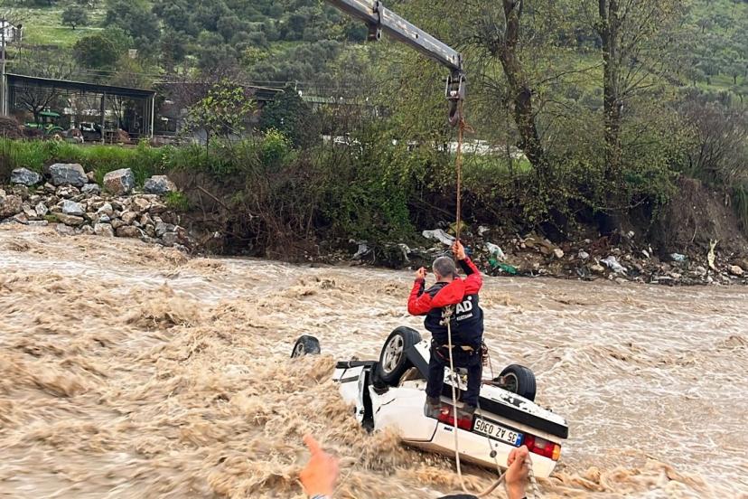 İlçede etkili olan sağanak sonrası, saat 18.00 sıralarında Yaka Mahallesi'nde oluşan sel sularına kapılan ve içerisinde iki kişinin bulunduğu 35 AZ 0305 plakalı otomobil, düştüğü dere yatağında ters döndü. İhbar üzerine bölgeye AFAD, itfaiye, sağlık ve jandarma ekipleri sevk edildi. Ekipler, araç içerisinde mahsur kalan vatandaşları kurtarmak için çalışma başlattı. Yoğun uğraşlar sonucu vinç yardımıyla otomobil, dere yatağından çıkarıldı. Otomobil içerisindeki Ayhan Demir ve Bülent Şallı’ya ulaşıldı. AFAD ekiplerince Demir, sağ olarak kurtarılırken; Şallı’nın ise yaşamını yitirdiği tespit edildi.
