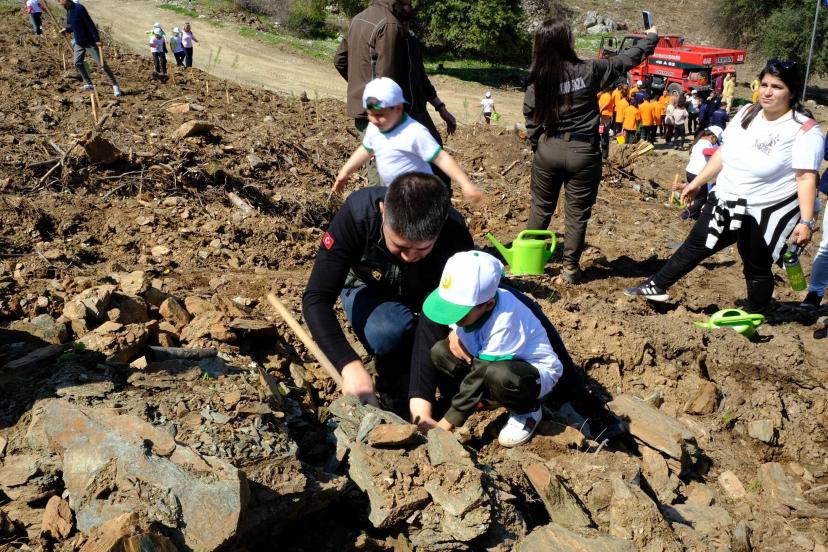 Kıyıkışlacık Mahallesi'nde yanan ormanlık alanda Dünya Ormancılık Günü ve Orman Haftası kapsamında fidan dikim töreni yapıldı. Törene Milas Kaymakamı Mustafa Ünver Böke, ilçe protokolü, Muğla Orman Bölge Müdürlüğü ekipleri, gönüllüler ve 400'den fazla öğrenci katıldı. "Türkiye'nin Gücü Orman" mottosuyla düzenlenen etkinlikte, yangınlarda zarar gören sahalarda 2 binin üzerinde kızılçam fidanı toprakla buluşturuldu. Protokol üyeleri ve öğrencilerin diktiği fidanlara can sularının verilmesinin ardından, orman ekipleri tarafından katılımcılara orman yangınları ve doğayı koruma konularında bilgilendirme yapıldı. Etkinlik kapsamında orman ekipleri tarafından öğrencilere günün anlam ve önemine ilişkin çeşitli hediyeler takdim edildi.