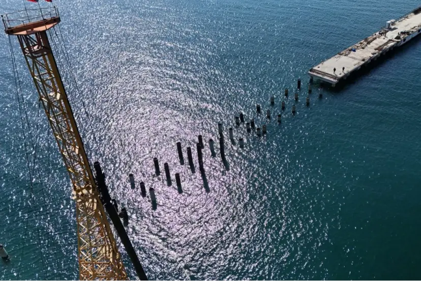 24 tane başlık kirişinin 7 tanesi tamamlanırken iskelenin 30 metrelik kısmında beton dökümü yapıldı.