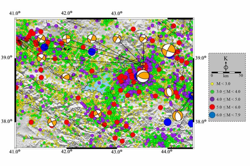 Konuya ilişkin konuşan Jeofizik Mühendisliği Bölümü Öğretim Üyesi Doç. Dr. Hamdi Alkan, Van Gölü çevresinde çok sayıda aktif fay hattı bulunduğunu ve özellikle gölün doğu kısmında daha yüksek bir enerji birikimi gözlemlediklerini belirtti. Birçok farklı bilimsel veriyi birlikte analiz ettiklerini ifade eden Alkan, "Van Gölü ve civarına baktığımızda gölün çevresinde birçok fay ve fay zonu bulunmaktadır. Özellikle gölün doğusuna baktığımızda kuzeyde Çaldıran, güneyde Hasan Timur, Başkale ve Saray fay zonları bizim için oldukça önemlidir. Bu zonlar aynı zamanda doğuya doğru İran içerisine giren Hoy ve Salmas gibi fay zonlarıyla da etkileşim halindedir. Yaptığımız çalışmalardan elde ettiğimiz sonuçlara göre, tek bir parametreden değil de birden çok parametreyi hesaplayıp o parametreler üzerinden bir değerlendirme yapmaya çalışıyoruz ki doğru olan yöntem de budur. Birden çok parametreyi hesapladığımızda, gölün doğusu göreceli olarak batısına göre daha yüksek stresli görünmektedir. Biz bunları Coulomb stres parametresi, B değeri değişimi, sismik durgunluk, RIPI skor algoritması, depremlerin derinlikleri, odak mekanizması çözümleri ve depremlerin yıllara göre dağılımı gibi birçok parametreden faydalanarak belirliyoruz" dedi.